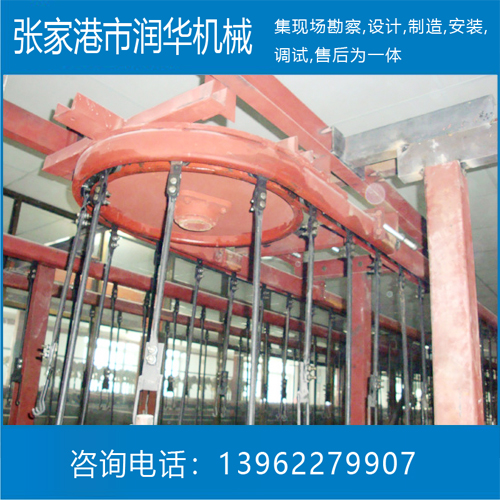 悬挂输送线适用于工厂之烤漆,金属涂装,生产组装线上,如家具厂,自行车厂,电子厂,电镀厂,五金厂,牛皮制品厂,汽车厂等。悬挂链线体长度 :最大300m,超过300需2个动力装置。悬挂链线体高度:可变,由客户选定。悬挂链输送速度:变频调速、无级调速。悬挂链负荷:链条节距为150mm,负荷重量8kg;链条节距为200mm,负荷